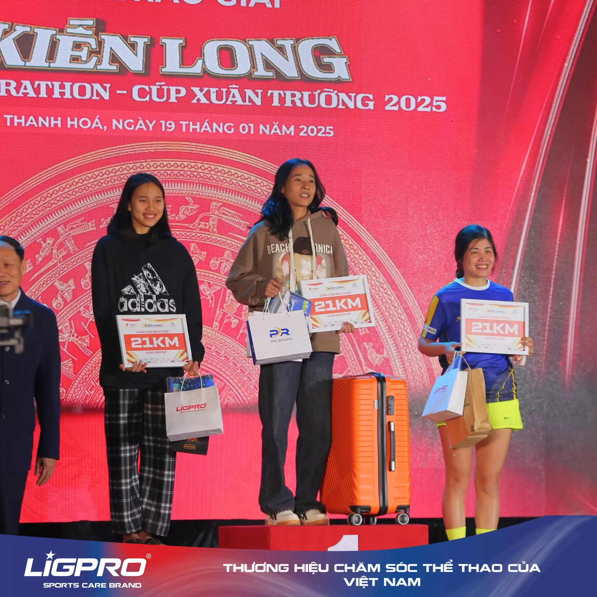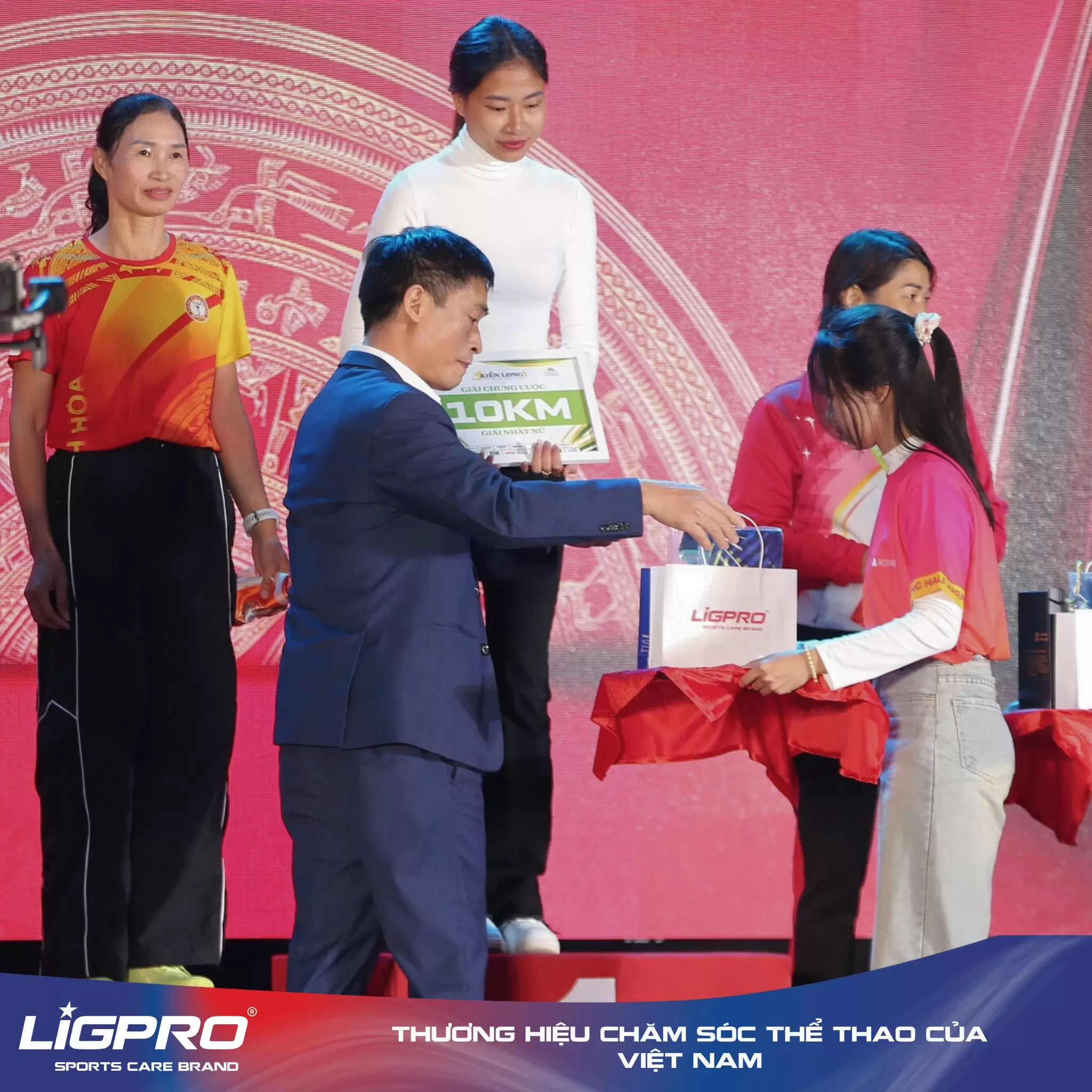 - Cự ly 10km và 5km: Top 3 mỗi hạng mục cũng được vinh danh với những phần quà ý nghĩa, trong đó có sản phẩm dinh dưỡng từ Ligpro.